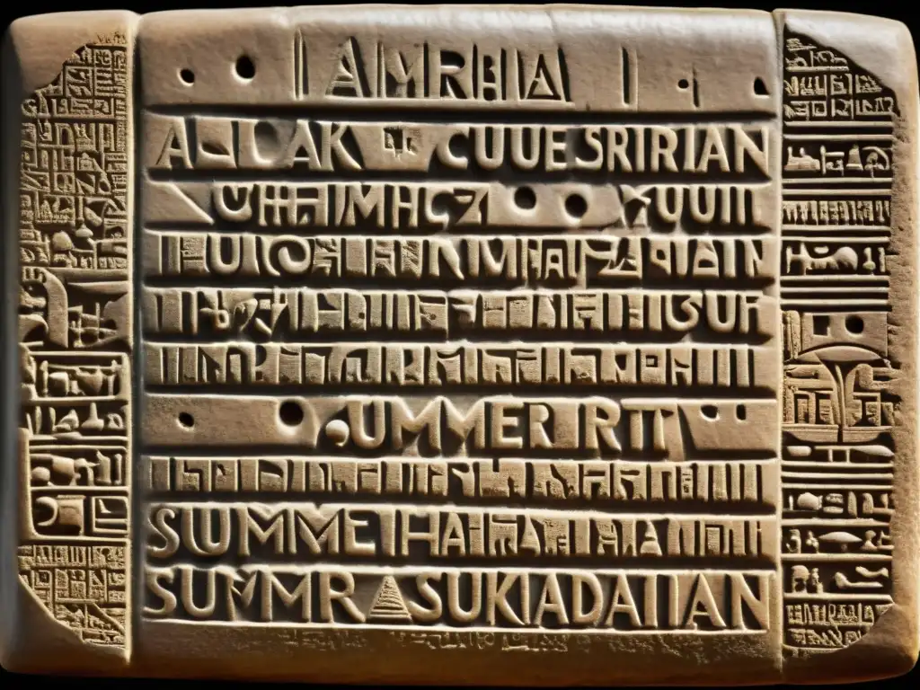 Una antigua tablilla sumeria con nombres y significados iluminada suavemente
